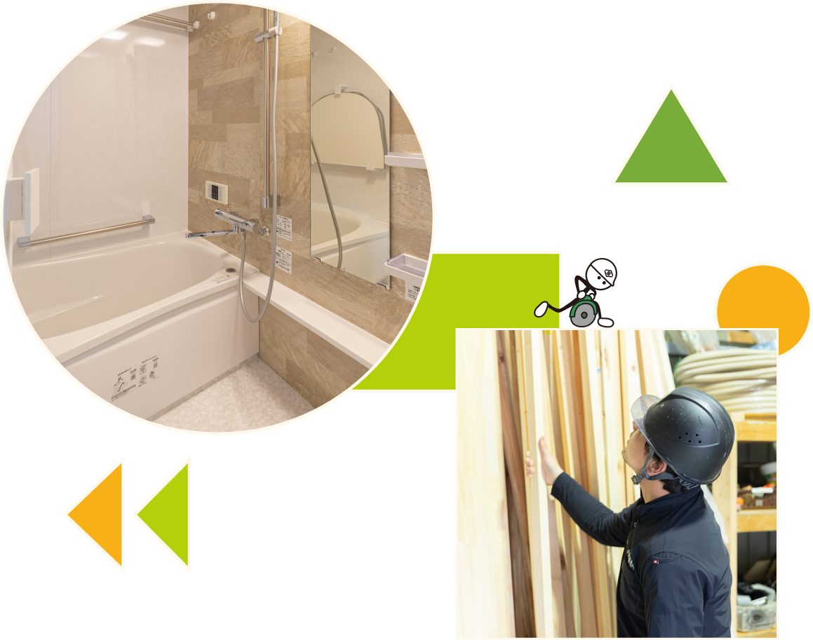 設備が壊れるなど緊急を要するリフォームから、生活の快適性や見た目の美しさにこだわったリフォームまで、幅広く対応。既存設備の入れ替えだけでなく、造作でのご依頼も受け付けています。